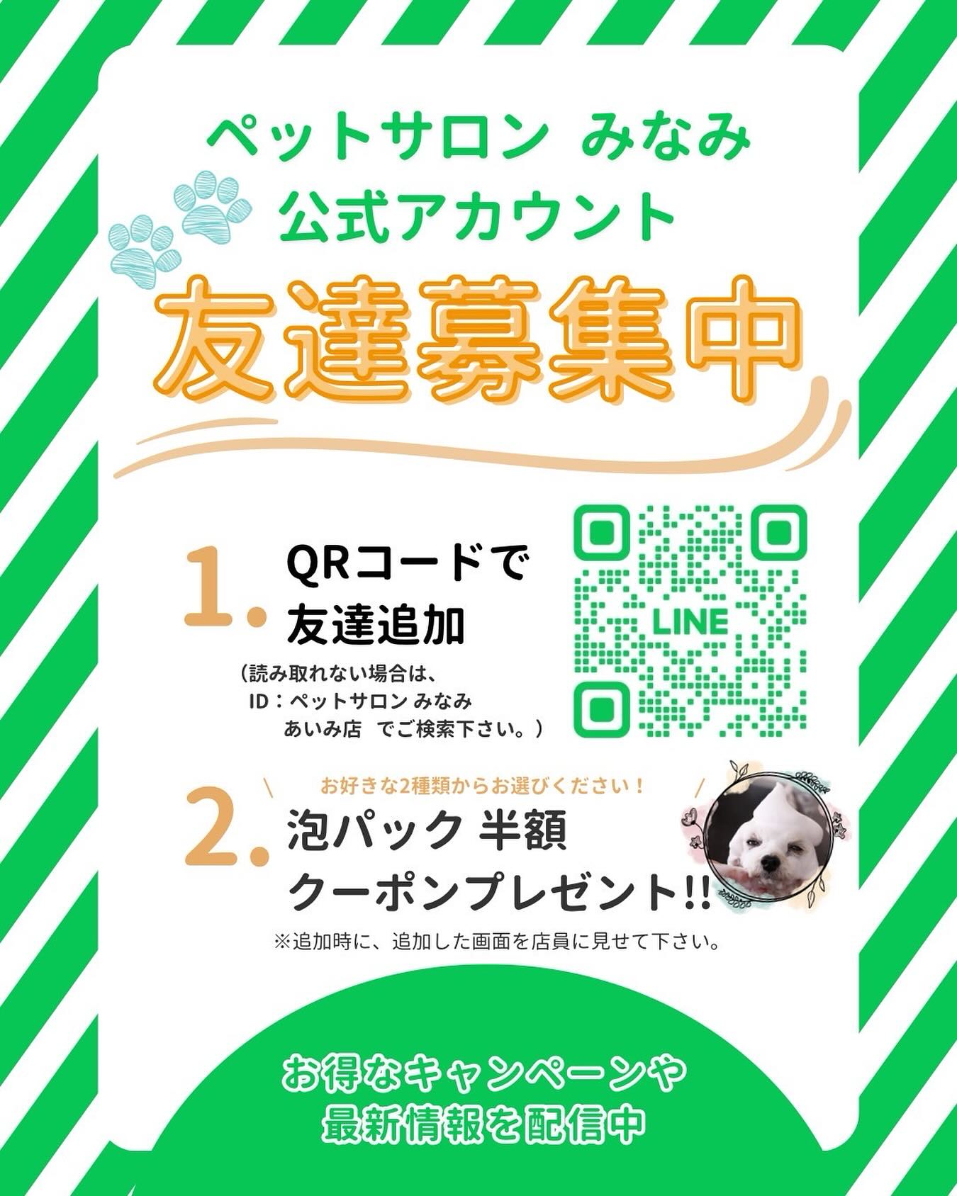 この度、ペットサロンみなみ各店舗の公式LINEができました!