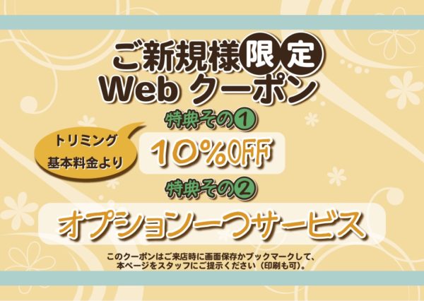 トリミング基本料金より10% OFF